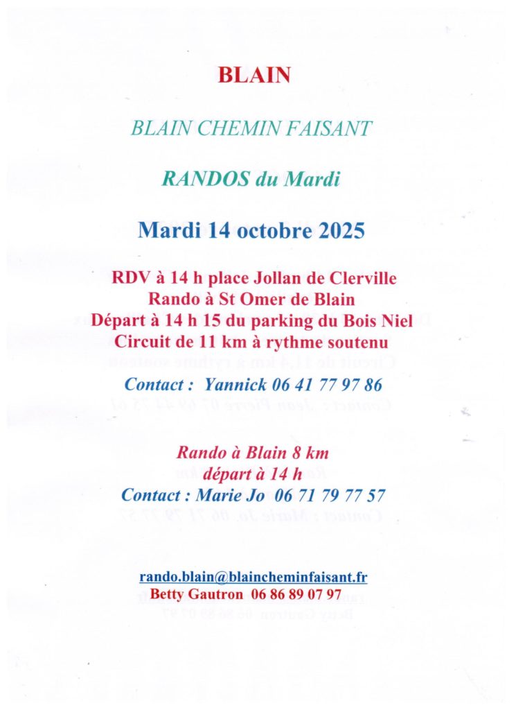 Mardi 14 Octobre : St Omer de Blain et Blain