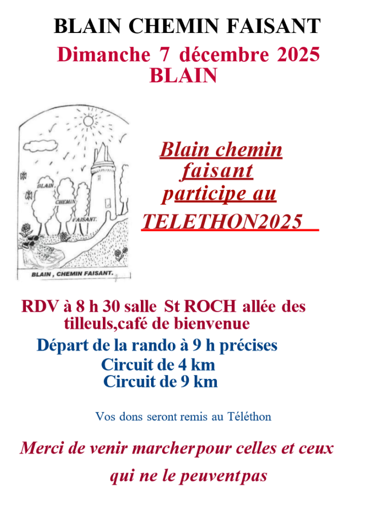 Dimanche 7 Décembre 2025 : Téléthon à Blain