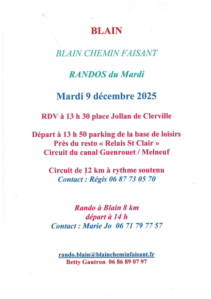 Mardi 9 Décembre 2025 : Guenrouet et Blain