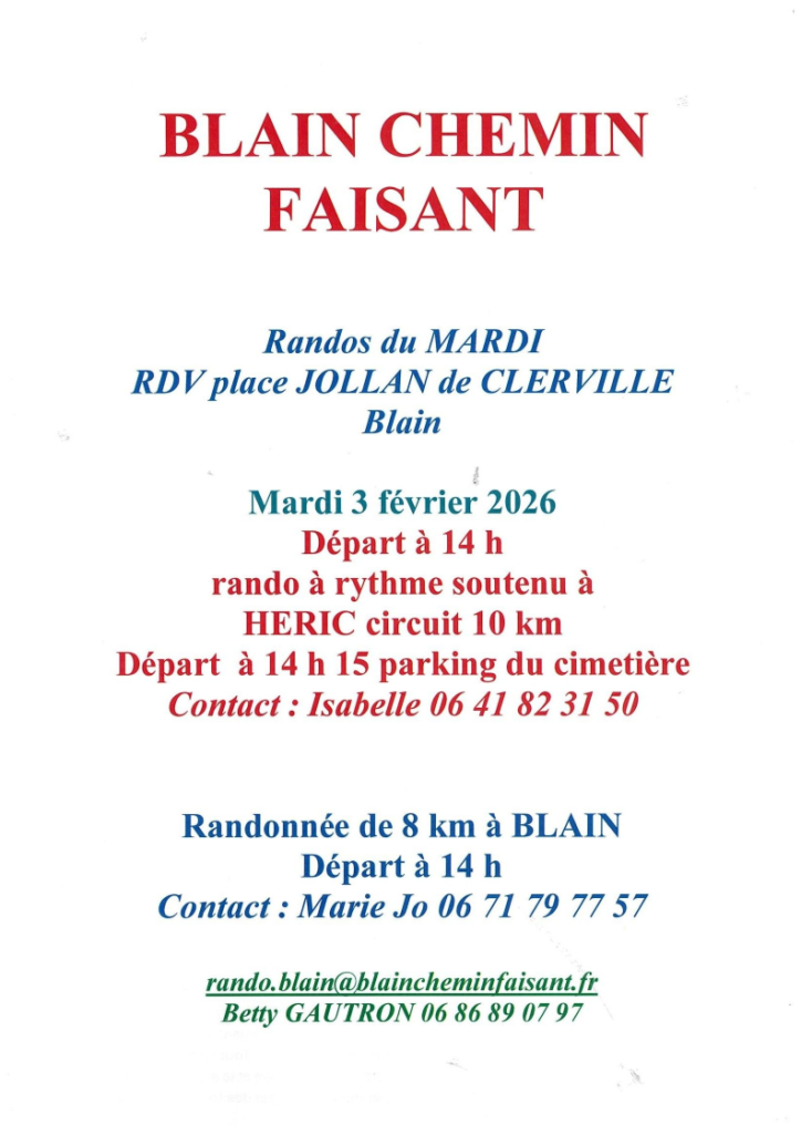 • Mardi 3 février 2026 : Blain et Héric