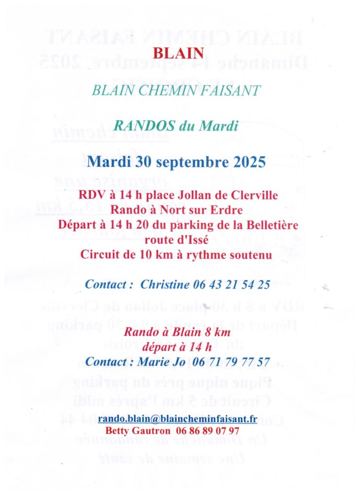 Mardi 30 septembre 2025 : Nort sur Erdre et Blain Posted on 25 septembre 202525 septembre 2025 by admin5708